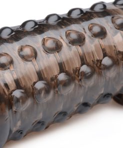 Add length and girth with this super soft enhancer sleeve! This bumpy sleeve is soft and flexible for a snug yet comfortable hug on your package. Externally textured with bumps and ridges to tantalize your lovers insides with internal texturing for your own pleasure. This enhancer sleeve is perfect for couples who want to experiment with a bigger shaft without discomfort and as soon as the mood strikes!