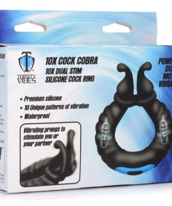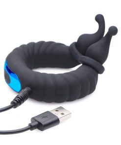 This ribby cock and ball ring is built for versatile vibes! The pair of flexible prongs is designed to flick and vibe on your partners clitoris, labia, or your own underside – choose from 10 unique vibration patterns and see what gets you hard and stimulates your partner best.
