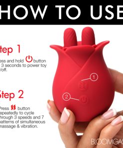 A new kind of blossom, this rose massages your most sensitive of places with two, textured nubs that rub it back and forth! The soft petals of this premium, phthalate-free silicone rose gently brush against your lips as you receive a sensual massage from these little fingers. Enjoy 3 speeds and 7 patterns of vibration and massage that rumbles from the palm of your hand directly into your erogenous zone below. Take it in the shower or bathtub, too! It is rated as IPX7 waterproof so it can be submerged underwater for up to 30 minutes! Recharge after use with the USB cable provided. After playing with this small, discreet, travel-friendly toy, immediately wash it with mild soap and warm water. Spray it with a toy cleaner and pat dry before storing in a cool, dark place.