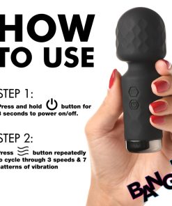 This is for the discreet hedonists. For those always ready for fun. This is for those travelers who bring their toys along. For the overnight stays and nights you get lucky. This mini wand fits perfectly between you and your partner for steamy sessions where just a little more stimulation does the trick. It fits in purses, bags and deep pockets. Made from premium silicone, it’s phthalate-free, silky smooth and soft against sensitive skin. The flexible neck bends in just the right angles. Enjoy 3 speeds and 7 patterns of vibrating bliss on any body part that craves a little more attention. It’s splashproof, too! It can handle gentle sprays of water or other fluids. After your self-love session, simply wash it with warm water and mild soap, then spray it with a toy cleaner and pat dry.