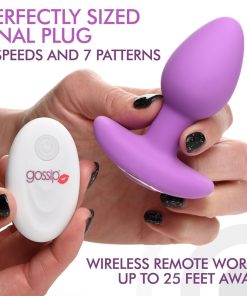 Enjoy this travel friendly, slim and sexy Pop Rocker Vibrating Silicone Plug! With a round, tapered tip and a slim neck you can insert easily and wear this plug for hours at a time comfortably! The silicone plug is silky smooth, hypoallergenic, unscented and non-porous for happy bottoms to enjoy. Use the remote control to change settings from up to 26 feet away and explore 3 speeds and 7 patterns for rumbling, buzzing, backdoor bliss! Recharge after each use for a power-packed session each time! Use only with water based lubricant. Wash after each use with warm water, mild soap and toy cleaner. Pat dry and store in a cool, dry location, away from direct sunlight and separated from other toys.