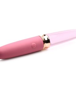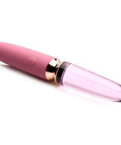 Slip some lube on the tips of this toy and then use the rest on yourself. As you slip the glass end in, enjoy how smoothly the glass glides against your skin. Rub it over your little pearl and massage yourself to an aroused state. Switch sides and notice the slightly grippier feel of the plush silicone as it both massages and penetrates you! Use this slender vibe alone or with a lover. Built small and compact, it’s perfect as a travel toy, too!