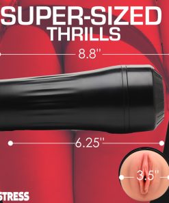 Satisfy your cravings for stroking your rod in a luscious, little pussy with this vibrating masturbator from the Mistress line! Imagine penetrating this realistic, soft and stretchy, premium TPE hole of your Mistress and enjoying the textured tunnel as it squeezes and massages your rod with each stroke! Enjoy the satisfying feeling of a variety of textures that change the deeper you go! The textures include ribbed, ridges, bumps, nubs and spirals! Use it to train yourself to last longer and practice edging. Enhance your erotic fantasies with a physical prop. Make those long-distance relationships more interesting by bringing a stroker to the call. With 3 speeds and 7 patterns of powerful vibration, you can push yourself to the edge or over it and enjoy the satisfying enhanced pleasure that only a stroker like this can deliver! Completely body-safe, this TPE stroker is phthalate-free and latex-free. Use only with water-based lubricant. Do not submerge under water, but use as much lube as you like! Clean before and after use with mild soap and water. Pat dry then sprinkle with cornstarch powder to extend the life of the product. Store separately in a cool, dust-free location. Use the USB cable to recharge between uses and keep the dust cap on to keep it clean and debris-free.
