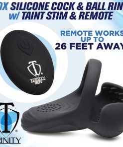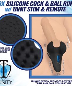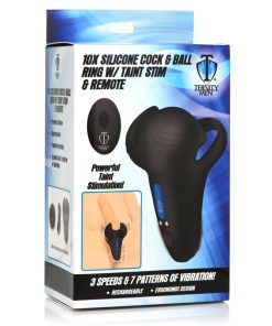Give your balls a pleasant buzz with this Silicone Cock Ring with Taint Stim! Remote controlled, you can change the settings without having to readjust your genitals. Hand the remote to a partner so they can have even more fun making you writhe and squirm! There are 3 speeds and 7 patterns to choose from, so enjoy them all! The toy cups your balls, gently holding them in place as it vibrates. The little nubs on the inside of the ball cups deliver tantalizingly delicious sensations while the taint-stimulating pad sends powerful vibes to your perineum! Made of premium, phthalate-free silicone, it is also silky smooth and body-safe to use with water-based lubricants. Use it as a constriction ring to help enhance your hard ons, as well!