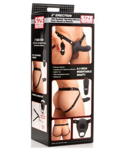 Grab the water-based lube and your partner. Then slip the harness on and tighten the straps. For a more comfortable fit for your dong, add some lube into the sheath before you insert your own rod. To sync the remote with your sheath, turn them both on and make sure the remote connects to the vibrator inside the sheath. Then, lube up your partner and let them guide your bigger dong inside. As you get them stretched open, enjoy them moaning and yelling for more! Turn up the intensity of the vibration yourself or hand them the remote so they can choose which settings they want! If you get excited too quickly and blow your load early, the firm sheath will stay hard so you can keep giving your partner the ride of a lifetime without taking a pause!