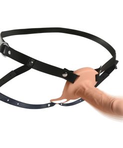 Grab the water-based lube and your partner. Then slip the harness on and tighten the straps. For a more comfortable fit for your dong, add some lube into the sheath before you insert your own rod. To sync the remote with your sheath, turn them both on and make sure the remote connects to the vibrator inside the sheath. Then, lube up your partner and let them guide your bigger dong inside. As you get them stretched open, enjoy them moaning and yelling for more! Turn up the intensity of the vibration yourself or hand them the remote so they can choose which settings they want! If you get excited too quickly and blow your load early, the firm sheath will stay hard so you can keep giving your partner the ride of a lifetime without taking a pause!