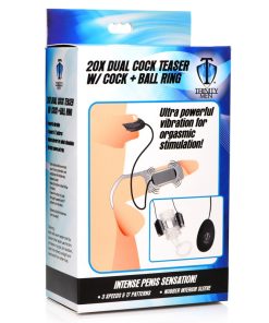 Give yourself a genuine cock tease with this Dual Cock Teaser with Cock and Ball Ring! The stretchy, TPR sleeve has a nubbed interior that reacts to the powerful bullet vibes to tease and tantalize your shaft! The dual vibrating bullets slip into parallel pockets on either side of the sleeve. With a snug, tight fit, the bullets give an... Read more