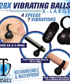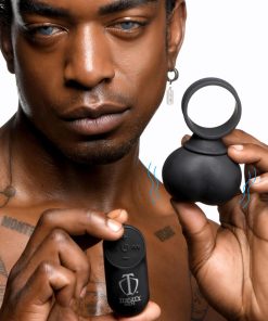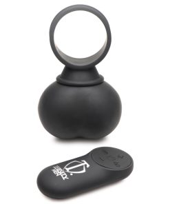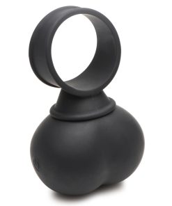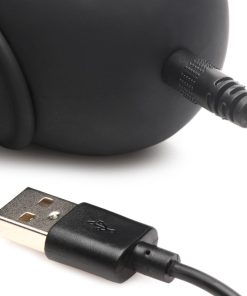 Add more fun to your play and get some vibrating balls to strap on to your toy or partner! These heavy balls are made of phthalate-free, premium grade silicone so they are body-safe and compatible with water-based lubricants. The plush, silky smooth design is also rated at IPX5 waterproof so you can enjoy them in the shower! The ring can be used either as a cock ring for your partner, or strapped around any dildo or vibrating insertable. Enjoy 4 speeds and 7 patterns of rumbling vibration that you control with the battery operated remote control. Wash with warm water and soap after use, then spray with a toy cleaner and wipe dry. Recharge the vibe using the USB cable provided.