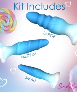 This set of three plugs gives you the best in variety of size and texture! With three graduated sizes of small, medium and large, you can train your derriere to take bigger and wider toys! Additionally, you can have fun doing it and explore more sensation by enjoying the variety of textures offered in this set! Each plug is firm... Read more