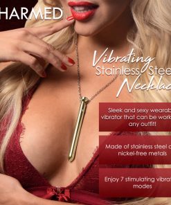 Enjoy wearing this gorgeous, stainless steel vibrator around the zinc alloy chain at your neck. The dazzling gem stones will catch your lover’s eye and match any chic or edgy aesthetic! When you’re feeling aroused, take the necklace off and simply press the button at the top to turn the vibrations on. Use the smooth, round tip to get exactly to the spot on your clit that feels divine, and enjoy living in ecstatic bliss with a beautiful toy that only those who are in the know… will really know about! Enjoy this toy in the shower, too! It is IPX6 waterproof rated.