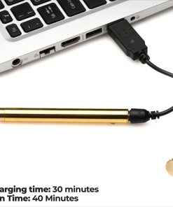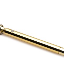 Dare to wear your favorite vibrator right around your neck! The sleek, sexy and stunning metal and rhinestone gem vibrator is made of nickel-free metal for sensitive skin and packs powerful vibrations. Choose from 7 different vibe patterns that you can feel along the shaft and in the pinpointed, smooth, round tip. Recharge using the toy-specific, USB charging cable when not in use. Wash with warm water and soap, then spray with a toy cleaner and wipe dry.