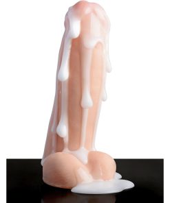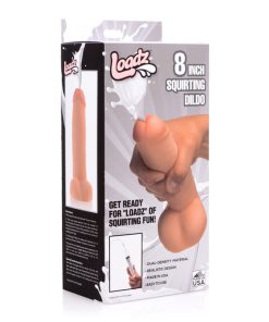 This 8 inch shaft is ready to spill its jizz for you. Get ready for Loadz of squirting fun! This ultra lifelike dildo features a dual-density material that looks and feels just like the real thing. Enjoy every vein, wrinkle, and ridge of this ejaculating dong as you enjoy penetration on your own or with a partner. To use, just fill the syringe with Cum Load Unscented Water-based Lube or another fluid, insert the tip of the syringe into the hose, and when you are ready for a wet rush, push in the plunger! This material is compatible with both silicone and water-based lubes and can be cleaned with mild soap and warm water after use.