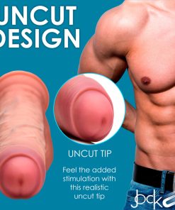 Truly bring the fantasy to life with an unbelievably realistic look and feel! With a soft pink blush to the head, covered slightly by the hood, this uncut rod also has light blue veins, wrinkled balls and a lifelike feel. Enjoy diving into roleplay and fantasy scenes with this hand-painted beauty! This dual density dong has a firm inner core and a squishy, soft outer layer that adds to the realism as you ride it. Made out of soft and flexible premium quality silicone, it is phthalate-free and latex-free making it a body-safe option for your most intimate adventures! The wide base fits in most strapon harnesses and has a strong suction-cup base for hands-free riding, as well! Wash it after eerie use with warm water and mild soap, then rinse it and spray it with a toy cleaner. Keep out of direct sunlight and heat.
