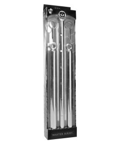 Keep your plaything in place and spread them wide with this sexy spreader bar. Made of durable steel, it has a wide range of adjustability. This bar has eyebolts securely attached to each end. Wrist and ankle cuffs can be attached to the bar as you desire, making it not only a vital accessory to your bondage play, but a warm welcome to any devious collection.