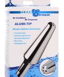 Add a clean, industrial edge to your enema play with this brushed aluminum shower nozzle from CleanStream. This smooth tapered tip glides in easily and features five outlet holes at the end that provide water flow. Aluminum is a perfect material for this application as it is sturdy, lightweight, and does not rust. Fill up and flush out in style with your new Wide Shower Enema Nozzle!