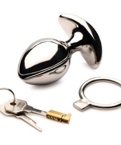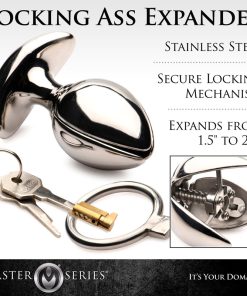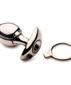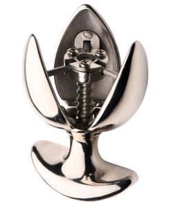 Take anal play seriously with the Ass Vault Locking Ass Expander! Made out of durable, non-porous, stainless steel, this plug is compatible with all types of lubricants and will last for years to come! For those who are kinky and love anal bondage, this is a must have! Using the flat, circular key you can expand the metal petals of the plug for a more intense backdoor fill that locks the plug in place. Once the gold pin flat key is used to officially lock the device, the petals won’t move and your rear end will be stuck in whatever position that plug is last put in. Make sure not to lose the keys so you can release your bottom from bondage! Enjoy premium quality materials that are temperature sensitive and have a substantial weight to them that can be felt as a satisfying, constant, downward pull on the rectum. The tapered tip helps make insertion easy and the slim neck and wide base keep it safely in place without worry of it being slipped further inside. The plug can easily be cleaned by boiling it in water and cleaning solution or using isopropyl alcohol. Clean it before and after each use.