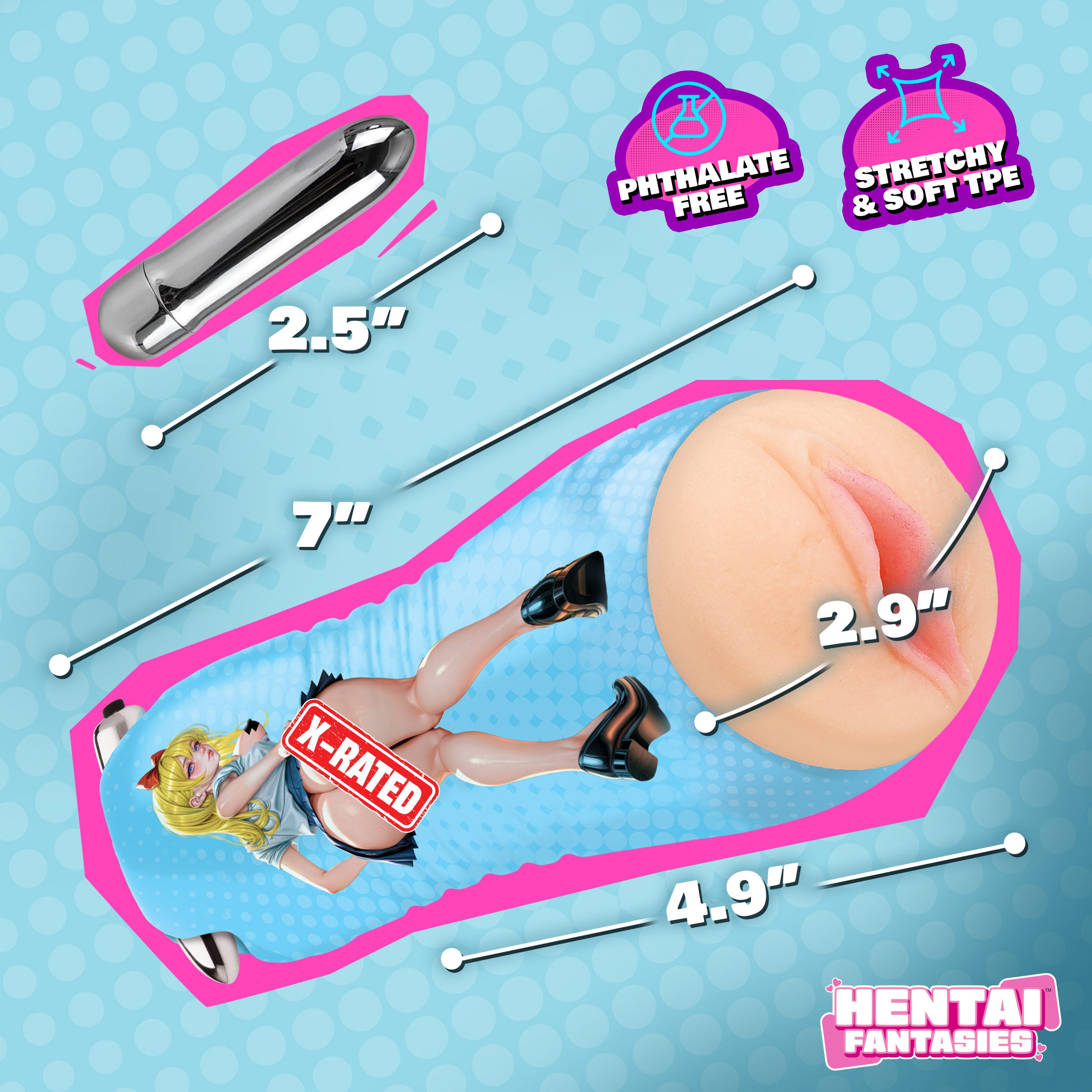 The Asuna the School Girl Vibrating Pussy Stroker can help you fulfill your schoolgirl fantasy. This playful pocket pal packs a realistic TPE sleeve with a tight entry. It grips like the real vaginal canal, and you can slide in up to 4.9 deep. Let the included vibrating bullet unleash 3 speeds and 7 patterns for next-level stroking ecstasy.