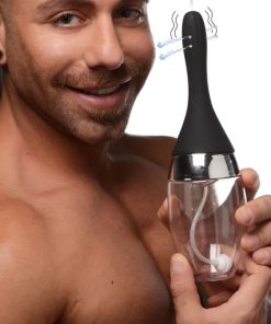 • Vibrating & Spraying Enema Hose: Enjoy 360 degree cleaning and pleasure with this vibrating and spraying hose. The hose is weighted to help keep it in place. There are 5 jet openings and you can choose between 3 speeds of spray and another 3 delicious speeds of vibration in your backdoor.