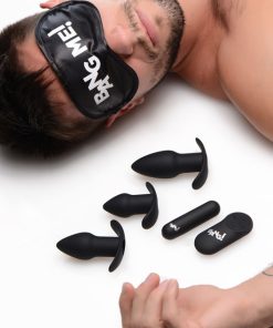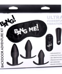 Explore the world of anal play with this Backdoor Adventure Set! This kinky kit includes a trio of graduated butt plugs, a 28X vibrating bullet, a wireless controller, and a satin blindfold – everything you need to indulge and experiment with you booty!