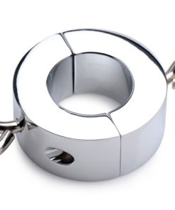 Indulge in intense ball-tugging play with the Ball Trap! Bring some heavy metal to your naughty activities and feel the satisfying stretch from this weighty ring. Designed to pull down on your sack with 11.6 ounces (220 grams) of weight, this metal ball stretcher is crafted for BDSM enthusiasts with a penchant for testicular play.