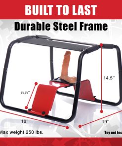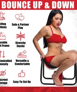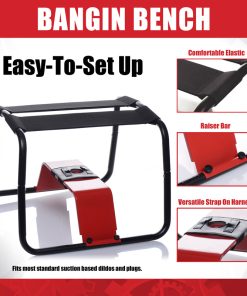 Attach your favorite dildo and this sex stool will give you the ride of your life! The Bangin Bench allows you to simulate sex from the top as you bounce up and down, aided by the stretchy straps of the seat. Use it on your own for penetrating intensity that is easy to control, or put on a show for your partner! You can even remove the red raiser bar and use it to straddle your lovers face while they pleasure you from below! Use the included strap-on harness to secure a dong, or simply attach a suction-cup dildo to the raiser bar. The Bangin Bench is easy to set up and discreet to store, with a durable steel frame that is built to last.