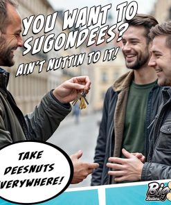 Let your balls dangle freely in the air when you get our Big Nuts Keychain! It might seem a little nutty, but with balls this big and heavy, you’ll never lose your keys and no one will ever steal them! This extra manly accessory shows off that you’ve got a big set of cojones and gets a laugh out of friends whenever they see them! You’ll always keep dees nuts close! Made out of heavy, solid brass, they attach to your keys via a nickel-free metal ring. Need a last-minute gift idea or stocking stuffer? They’re great for a bachelor party, birthday, or White Elephant gift exchange. Let them know who’s boss when you show off your pair wherever you go!