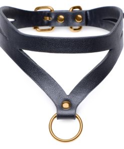 Explore the world of power exchange with this stylish and convenient kit of leather and gold! The included Bondage Baddie Collar features a lightweight design and striking aesthetic to decorate your subjects neck with an attractive, edgy style that is at home in the club as well as the dungeon.