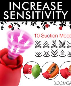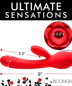 • The Full Package Rose: This rose has everything! With dual motors, it gives you a budding rose that sucks your clit, an auto-thrusting, ribbed shaft, and buzzing rabbit ears to stimulate your clit while the shaft is inserted! Features can be used simultaneously or separate.
