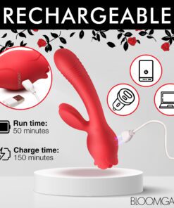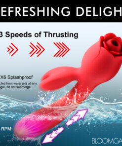 This rose is the complete package when it comes to female satisfaction! The stem of the rose is a slightly curved, flexible shaft with a round head and ribbing beneath the head. The rabbit ears vibrate and rest against your clit as you enjoy the auto-thrusting feature! There are 3 speeds of thrusting to enjoy that also turn on the... Read more