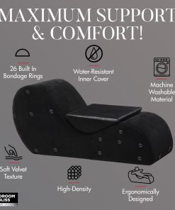This sexy, comfortable chaise lounge is perfect for adding some spice to your life! Made out of high-density foam, it's easy to move and compact when shipped. This bondage couch opens up a world of possibilities that enable you and your lover to explore countless new sex positions that support your body and theirs! With 26 different nickel-free, metal attachment... Read more