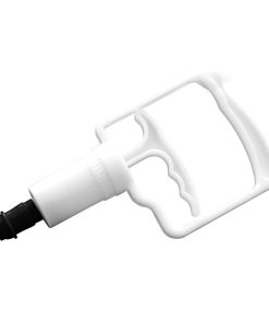 Create temporary engorgement of the breast area with a hand-pumped cupping system! Each of the two large cups has a rubber ring around the base to create a strong seal when you place it on your skin. Attach the green end of the tubing to the green tips of the cups and the white end of the tubing to the hand pump. Pull the pump trigger to create suction, working towards your comfort level. The tubing can be removed and your flesh will stay caught in the pressure of the cup. Press down on the green tip to easily release the suction. Experiment with enlargement and increased sensitivity on your own or with a partner!