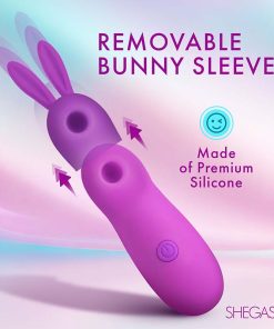 Discover the delightful sensations of the Bunny Sidekick Suction Clit Stimulator! This adorable stimulator features a body-safe, phthalate-free premium silicone bunny sleeve, ensuring a smooth and silky touch. With 10 levels of powerful suction, your clitoris will be in heaven! The squishy bunny sleeve provides an extra layer of soft, cushioned comfort, enhancing your pleasure experience. Its petite, travel-friendly size means you can take it wherever you go for discreet enjoyment. Say goodbye to waiting for recharges; this device operates on reliable batteries, so it’s always ready when you are! Rated as IPX5, it is splashproof. Wash with warm water and mild soap. Use only with water-based lubricants for best results.