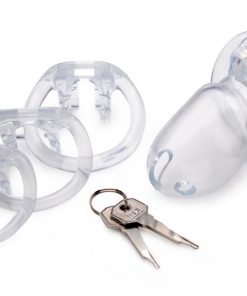 The secure locking mechanism secures this cage without pesky locks getting in the way! The Clear Captor includes two keys, one for you and the other for your sub in case of emergencies.