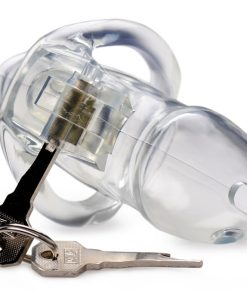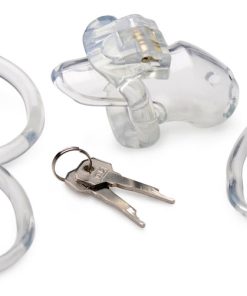 The secure locking mechanism secures this cage without pesky locks getting in the way! The Clear Captor includes two keys, one for you and the other for your sub in case of emergencies.