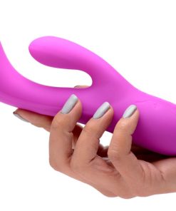Come Hither and treat your G-spot to the incredible power of this Moving Head Rabbit Vibe! This powerful vibrator rubs against your insides with its moving head in combination with the external clitoral stimulator. Made with super plush, perfectly firm, and body safe ingredients for worry free play.