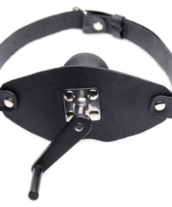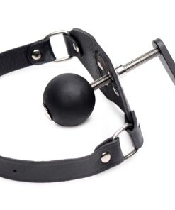 Open wide! Your partner will not have a choice when you stuff this unique ball gag into their mouth! Fasten the strap tightly at the nape of their neck, pushing the silicone ball past their bratty lips and teeth. The thick panel of fine leather will muffle any moans or whines that might still escape. Time to release the wickedness within! The cruel crank allows you to push the silicone ball deeper and deeper into their mouth, prying their desperate mouth open more and more. Take your BDSM play into a new territory of tantalizing torment…