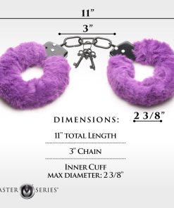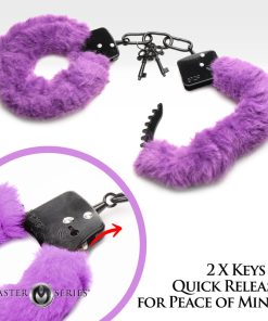 These furry, purple cuffs are soft and sensual against your lover’s wrists. The strong, metal cuffs inside won’t cut into their delicate skin. Instead you have the padding of this faux fur, artificial wool! The cuffs are fully adjustable and close as tight as 4.5 inches and open wide to a 7 inch circumference. Included with the cuffs are 2 keys so you always have a spare! To clean, simply spot clean the wool with warm water and soap and a washcloth, then let dry.