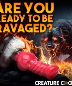 Get ready to howl with pain and pleasure as this Cujo Canine Dildo ravages you! Designed with a wild, dog or wolf-like animal in mind, this bright red shaft has a wide, pointed and flat head, rows of thick, ropey ridges along the shaft and a thick, round knot in the center. At the base is a tuft of white... Read more