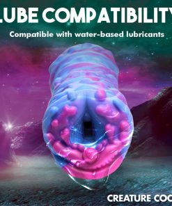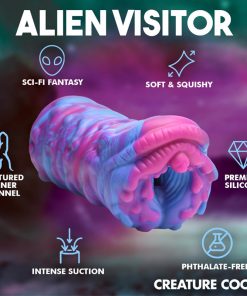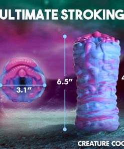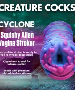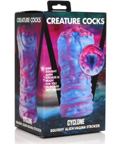 This extraterrestrial, squishy Cyclone Alien Stroker is out of this world! The thick, flexible, premium silicone is phthalate-free and silky smooth. Push yourself inside and penetrate the textured tunnel of this erotic alien orifice! Enjoy the vibrant color and gushy, wet look as you grip it and stroke away! Use only with water-based lubricants. To clean, use warm water and mild soap, then spray with a toy cleaner and let dry.