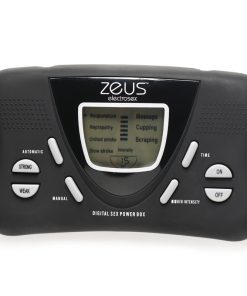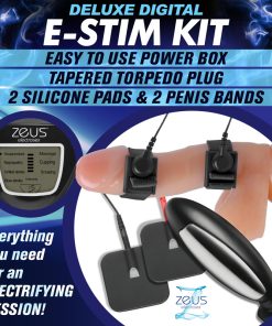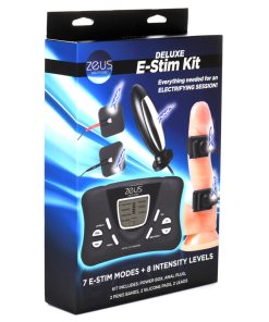 Electrify your experience with this shockingly easy to use and pleasure-packed E-stim kit! Included in the kit is 1 power box, 1 butt plug, 2 penis bands, 2 silicone pads, and 2 leads. The anal plug is made of nickel-free metal and ABS plastic. Insert it with the assistance of water-based lube or e-stim gel and enjoy the electric pulses in your backdoor. It will feel amazing on your prostate or A-spot! Use the penis bands and strap your rod in so it can electrify your shaft! Place the sticky, silicone pads anywhere below the beltline to add even more intensity to your experience! With this Zeus E-Stim power box, you have 8 intensity levels and 7 different e-stim modes including Acupuncture, Naprapathy, United Stroke, Slow Stroke, Massage, Cupping and Scraping. These modes mix massage, bodywork and stimulation to give you unique, pleasurable sensations unlike any other! All materials are phthalate-free and nickel-free so you can rest assured your new toy is body-safe!