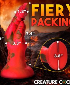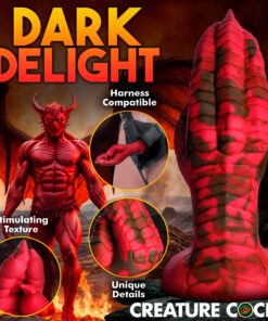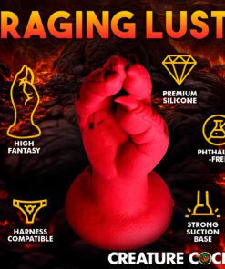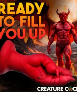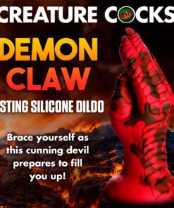 Want to get fisted by a demon, dragon, or other mythical creature? This Creature Cocks Demon Claw is the perfect addition to your kinky collection! This red hand has scales on it, long claws, and meaty fingers! Enjoy the unique textures as you take this clawed hand inside! The wide flanged base makes it safe for backdoor play as well as front door entry. The base also has a strong suction-cup for hands-free riding! Combine it with a compatible strapon harness for couple’s roleplay or pegging. Made out of squishy, firm, flexible material it can get into every space, no matter how tight! Enjoy the premium quality silicone that is body-safe and phthalate-free. Play with kinky cosplay, fantasy roleplay, and any sci-fi or horror scene you’re dreaming up! After play, wash with warm water and mild soap, then rinse and spray with a toy cleaner before patting dry. Store in a cool, dark place out of direct sunlight. Use only with water-based lubricants for best results.