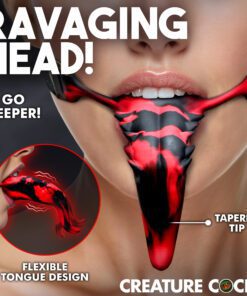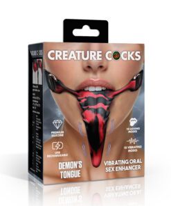 The Demon’s Tongue Silicone Barbed Tongue brings the Creature Cocks fantasy universe to life as a fully wearable oral sex enhancer. A sculpted barbed silicone demon tongue works through 10 licking modes and 10 vibrating modes at the same time, held in position by an adjustable vegan leather harness strap. The barbs along the 5.4″” tongue create a layered friction sensation against the skin with every stroke, building stimulation that goes well beyond what a smooth surface can deliver. Strap fits 14.75″” to 22.25″” in circumference for solo hands-free wear or partner use. IPX6 waterproof. USB rechargeable. Phthalate-free and nickel-free premium silicone.