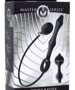This inflatable silicone plug has it all! The Devils Rattle is an anal toy packed with unique features to satisfy your kinky wants and needs – featuring an inflatable plug, flexible cock and ball ring, and internal balls to rattle and drum against your anal internals with every movement. This silky anal delight is perfect for players looking for a versatile toy that checks all kinds of boxes!