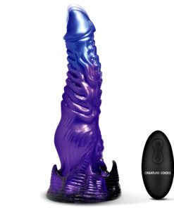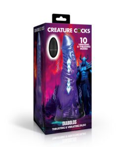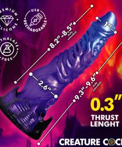 Satisfy your desires with a bold demon dong like no other! This unique creation, the Diabolos Thrusting and Vibrating dildo, is adorned in striking electric blue and purple hues, features ridged scales, a girthy mushroom tip, and spiked detailing at the base for unforgettable stimulation. Its silky-smooth, body-safe silicone offers ultimate comfort during every session. Amplify your pleasure with 10 vibration and thrusting modes, fully adjustable via the wireless remote. Whether in the shower or mounted on a flat surface using the secure suction cup base, its waterproof design ensures versatile fun. Easily recharge using the USB cable for endless magical moments. The adventure is yours to control!