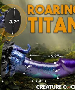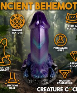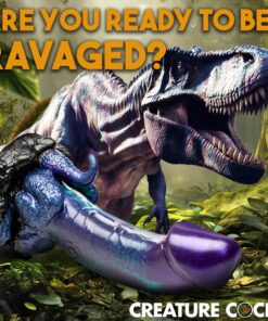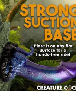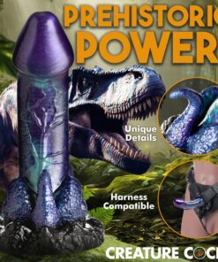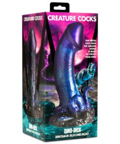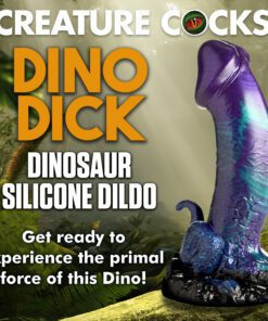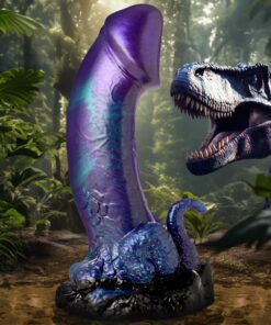 With beautiful, glittering blues, blacks, purples and teals, this Dino dong is about to outshine your other toys! With a massive, mushroom-tip head, you’ll enjoy every time you pop it inside! The curved shaft has prominent veins on one side and a smooth ridge on the other. At the base are little dinosaur legs, a curved tail and a small pair of balls. It’s as fun to look at as it is to ride! The wide base provides powerful suction so you can go hands-free by placing it on any flat surface to keep it in place. You can also combine it with a compatible strapon harness for pegging play! Made out of premium, phthalate-free silicone, it has a firm core and soft, silky surface. Explore every sci-fi, fantasy, roleplay or cosplay scene you want with this epic adult toy! Use only with water-based lubricants for best results. After play is over, wash the dildo with warm water and soap and use a toy cleaner to spray clean. Wipe dry and store in a cool, dark place out of direct sunlight.