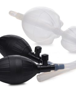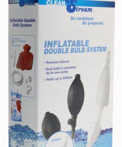The Silicone Inflatable Double Bulb System is made of premium silicone and is designed for the enema enthusiast. The nozzle is inserted along with the first balloon. Both balloons are then inflated, creating an internal feeling of fullness and an external seal. Once the seal is created, liquid is filled inside of the rectum via a bag system or the Clean Stream In Line Accelerator. The premium silicone is ultra soft yet firm and flexible, for comfortable and body safe use. Each bulb has an integrated release valve for quick deflation and easy removal.