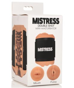 Pump your passions into this Double Shot stroker! It has a mouth and vulva for your pleasure that allow your fantasies to run wild with hundreds of scenarios. The tight, textured tunnel in the center has ridges, grooves and is stretchy and realistic feeling for a satisfying solo session. You can also use it with a partner to enhance foreplay and sexy fun! The luscious lips beckon you as does the open mouth. Made of stretchy, soft, realistic feeling TPE rubber, it offers a fantastic feeling every time! Designed to be easy to travel with and use, take it on the go with you or during travel! With open-ends on each side, you can plummet your peen through the hole or deeply into it and let yourself release through the hole as you wish! To clean, just rinse it out and use mild soap and warm water, then let it fully dry. Two caps are included – one for each end – and can be used as something to bump your head against if you want a little resistance. Enjoy the ridges, bumps and nubs from the stretchy and realistic stroker and only use water-based lubricants for best results!