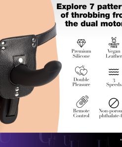 Note: Includes double dildo, remote control, and harness. Charges via USB. Remote requires 1 27A battery