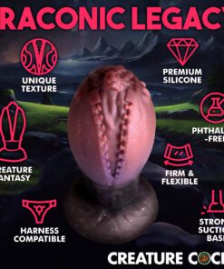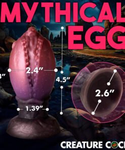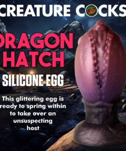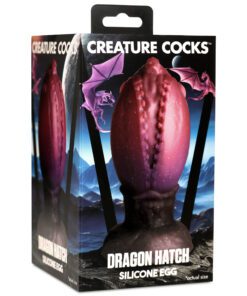 Become the Queen Mother of Dragons or the King of Dragon Eggs! This Dragon Hatch egg has begun to crack open and reveals a small, baby dragon beginning to escape! The glittery, dark red and brown egg is textured with zipper-like ridges along the crack of the egg and a tapered, dragon-head tip! The tapered tip helps you insert it and the round, wide, squishy body gives you a satisfying fill! Enjoy laying the egg as you push it out post-penetration! The egg is made from premium, phthalate-free silicone and is plush, silky smooth. Use only with water-based lubricants. After use, wash with warm water and mild soap then rinse and spray with a toy cleaner. Store in a cool, dark place.