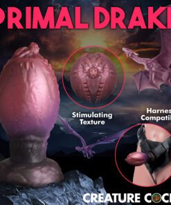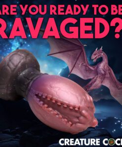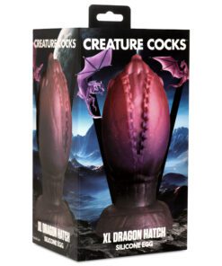 Become the Queen Mother of Dragons or the King of Dragon Eggs! This Dragon Hatch egg has begun to crack open and reveals a small, baby dragon beginning to escape! The glittery, dark red and brown egg is textured with zipper-like ridges along the crack of the egg and a tapered, dragon-head tip! The tapered tip helps you insert it and the round, wide, squishy body gives you a satisfying fill! Enjoy laying the egg as you push it out post-penetration! The egg is made from premium, phthalate-free silicone and is plush, silky smooth. Use only with water-based lubricants. After use, wash with warm water and mild soap then rinse and spray with a toy cleaner. Store in a cool, dark place.